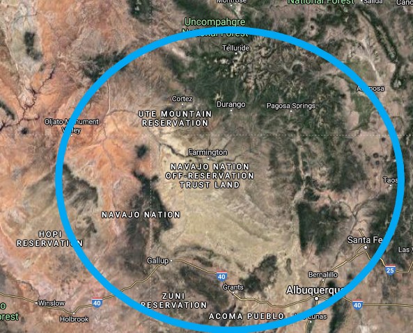 The Navajo call themselves “Dine”. Their traditional lands are bound by four sacred mountains. Look at the map above. The sacred mountains are in black. The area across Arizona, Utah, New Mexico and Colorado encompassed by those mountains is called the “Dinetah”. They believed their gods gave them this land to protect. And their gods would thus would thus protect them.