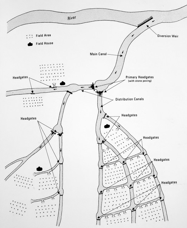 In Southern Arizona it was discovered that, once upon a time, a massive canal network distributed water from the Salt and Gila rivers of Southern Arizona – flowing out of Arizona and New Mexico mountains where snow used to fall abundantly – to irrigate hundreds of thousands of acres which provided a massive supply of food for a civilization that some estimate may have 400,000 people.