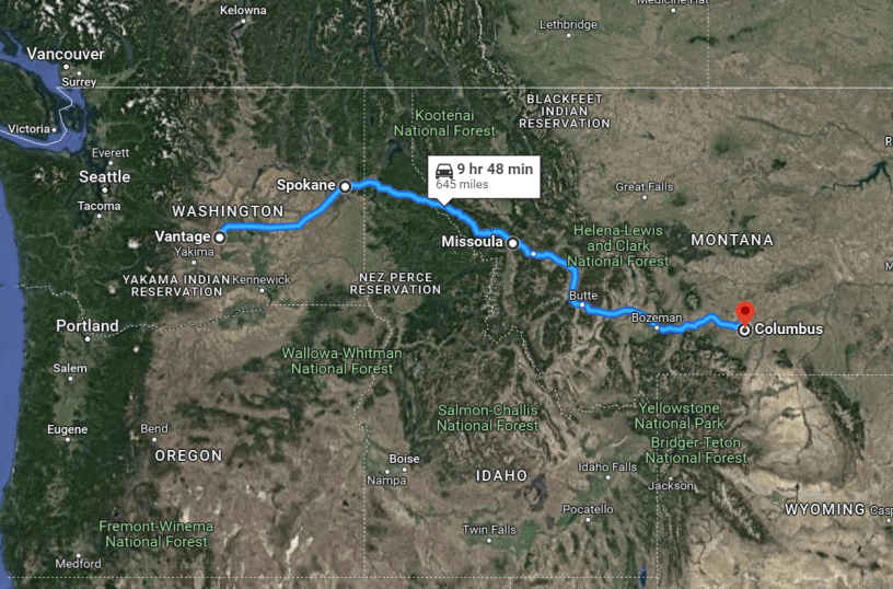 Wanted to make good distance today. The distance between Vantage, Washington and Syracuse, New York on I-90 is over 2,500 miles. With detours (like to Devil’s Tower, Wyoming) it would be more. Reducing that number to under 2000 sounded good.