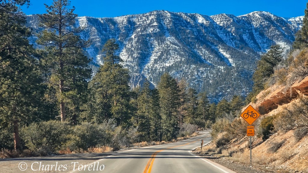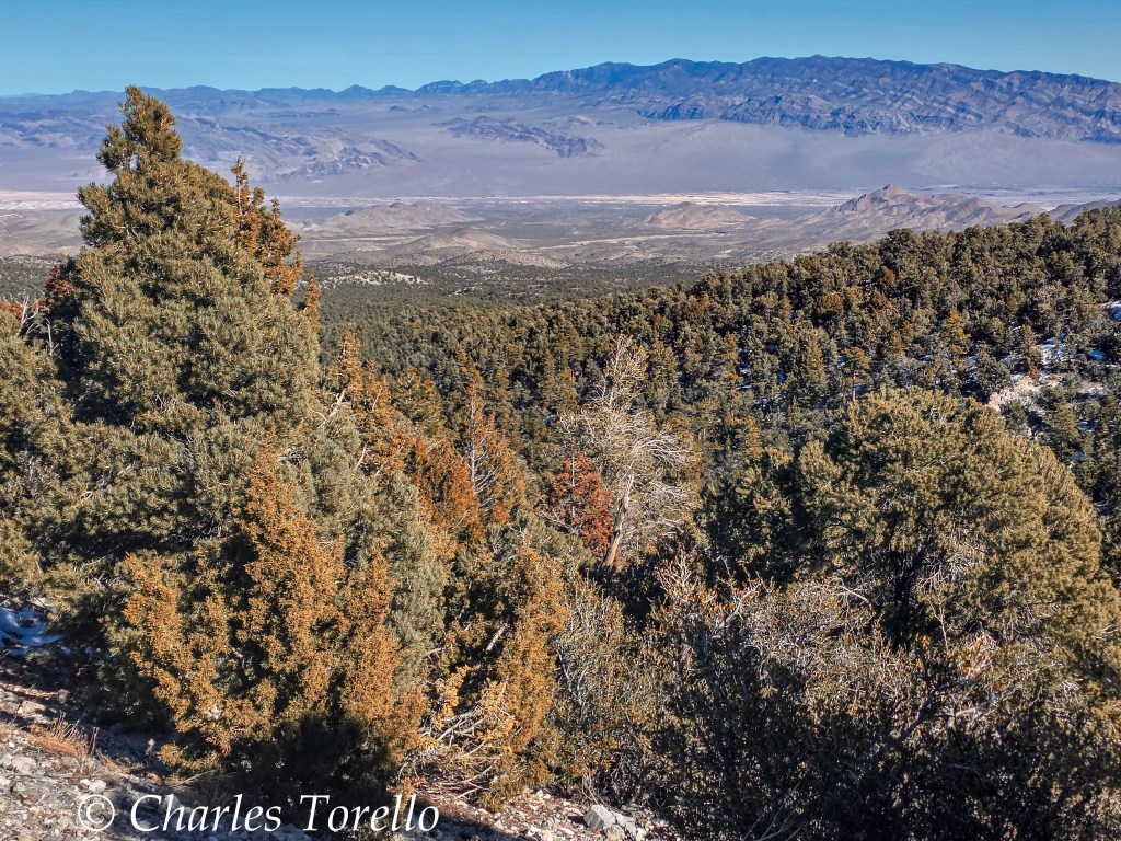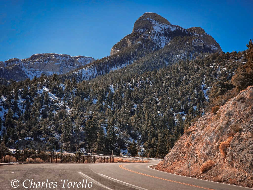 My destination thereafter was the Spring Mountains. They’re about 30 miles west of the Bellagio as the raven flies. The tallest peak is Mt. Charleston which is 11,900′. Other peaks top out over 10,000′.