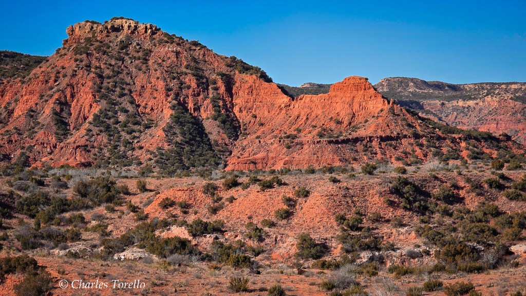 However, the Red River – the river that’s the border between Texas and Oklahoma – is born from the Escarpment, and has produced impressive canyons.