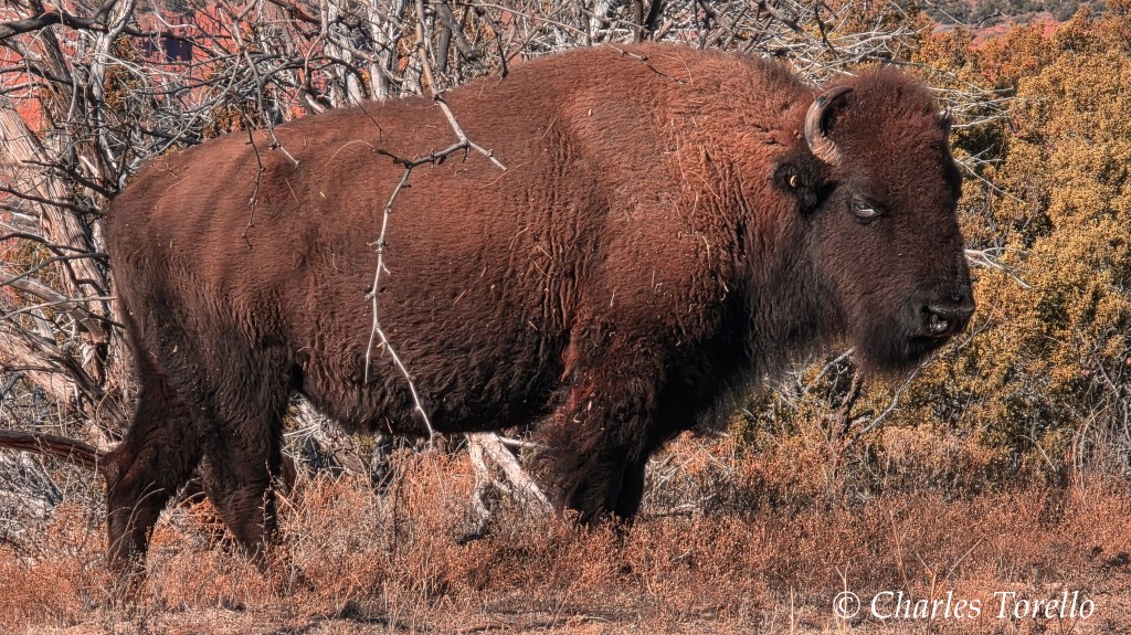 Buffalo roam wild at Caprock Canyons SP. They killed an Amarillo man last month apparently.