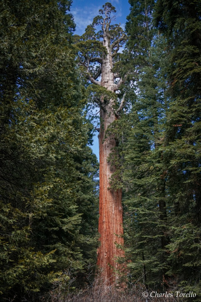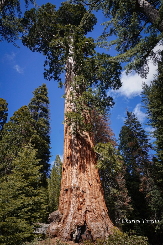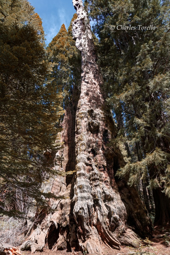 They like growing along small drainage channels that aren’t quite creeks. They grow from elevations ranging from 4000’ to 7000’. The tallest sequoias don’t reach 300′, yet, the biggest sequoias can have trunks 30′ in diameter at their bases. Their total volume of wood, even though they’re shorter, tends to be far greater than redwoods.