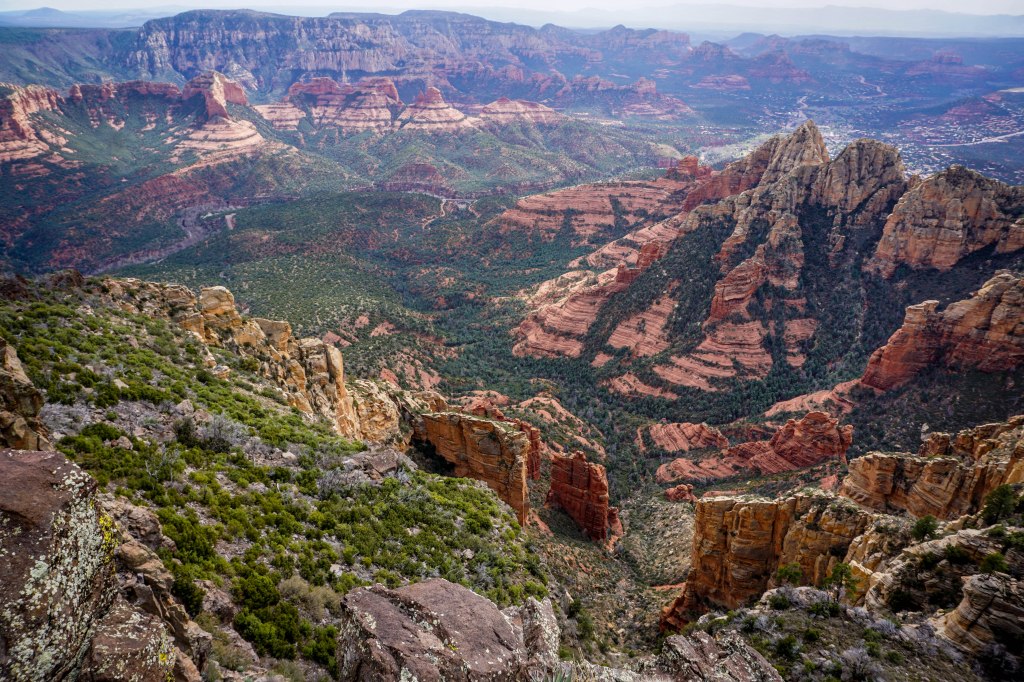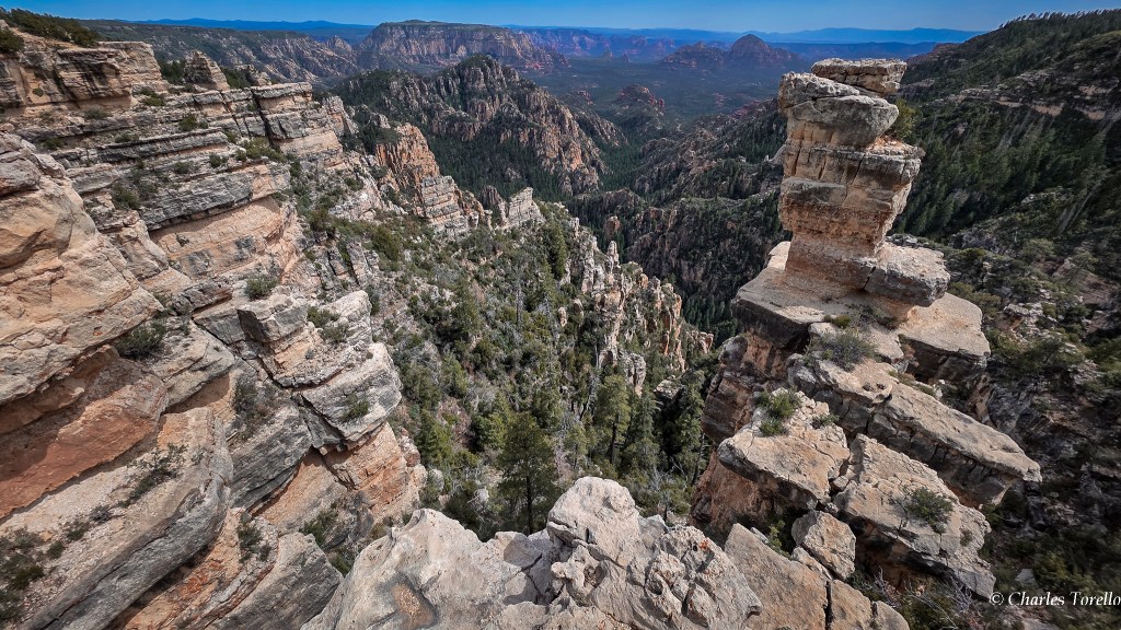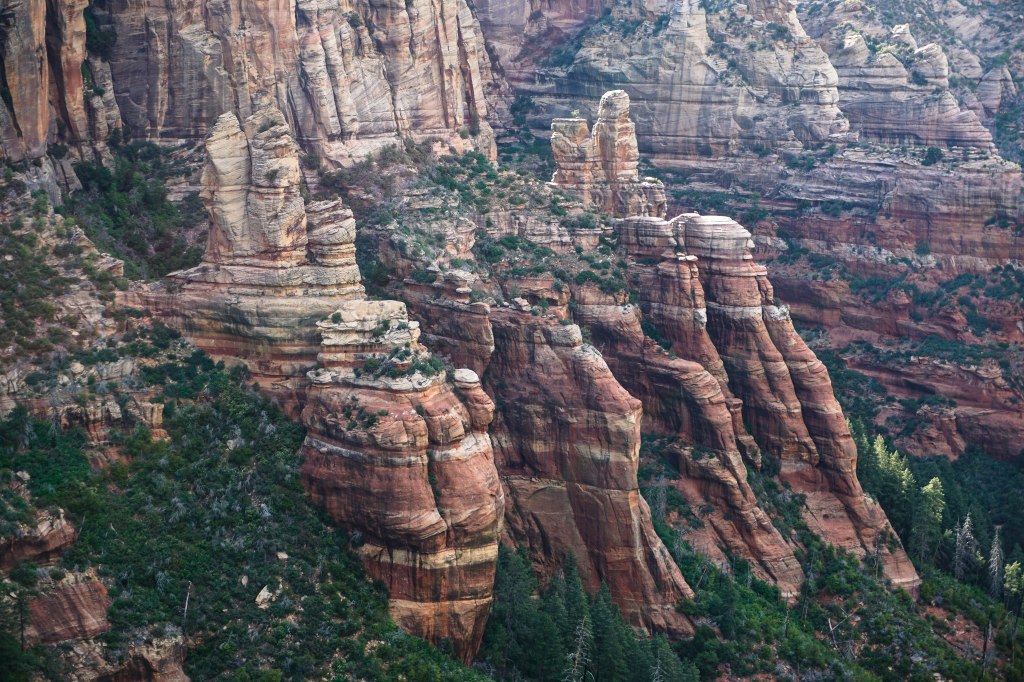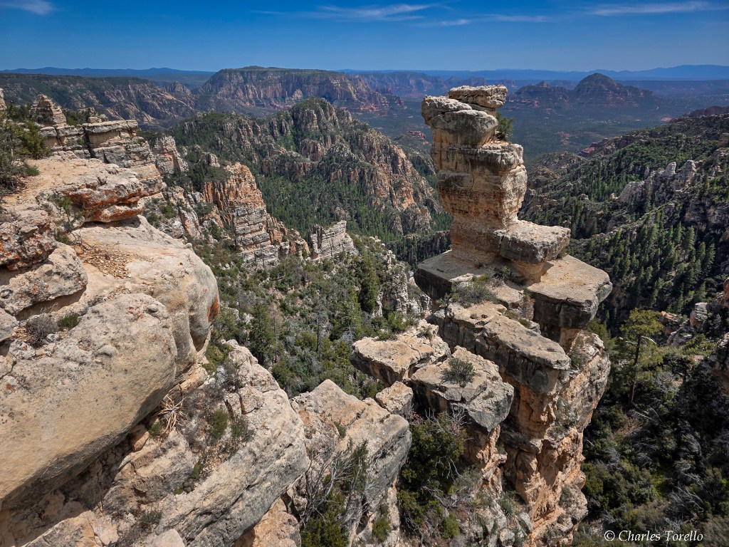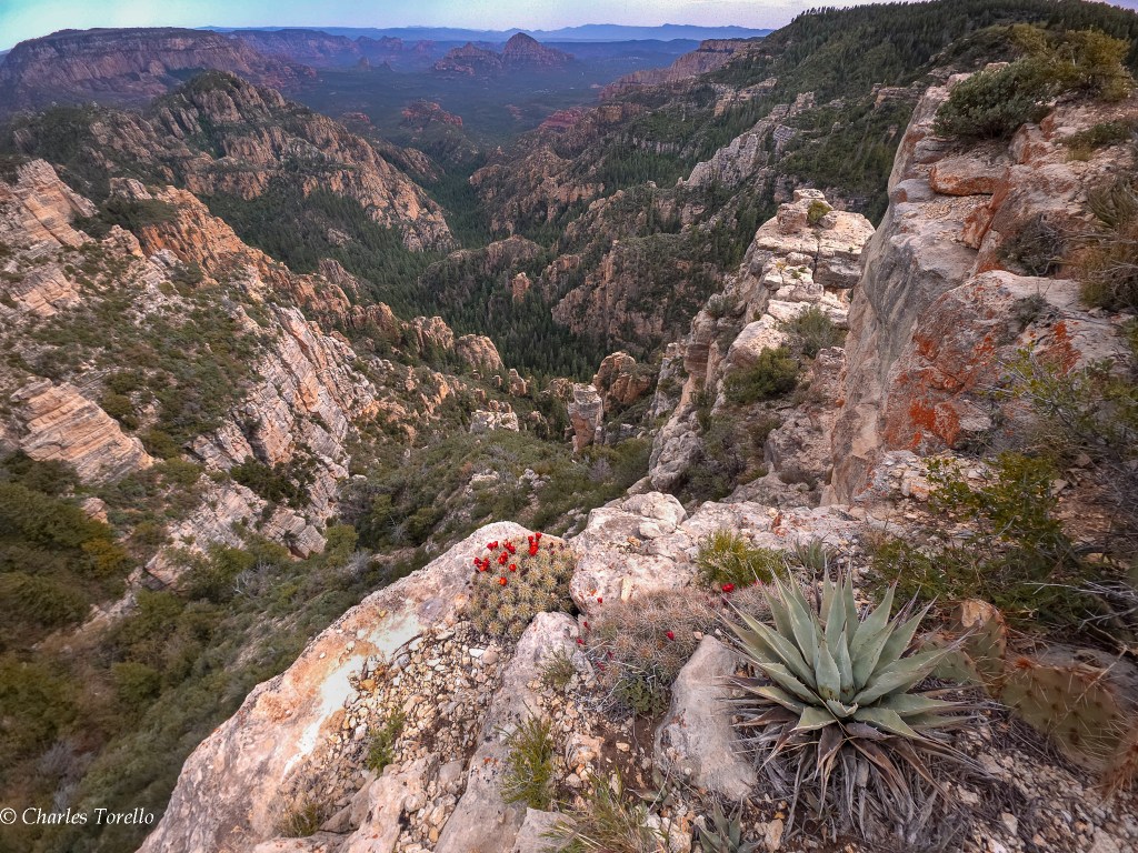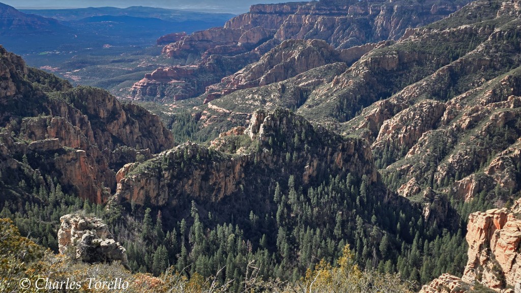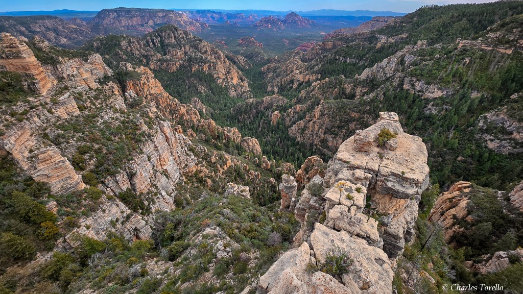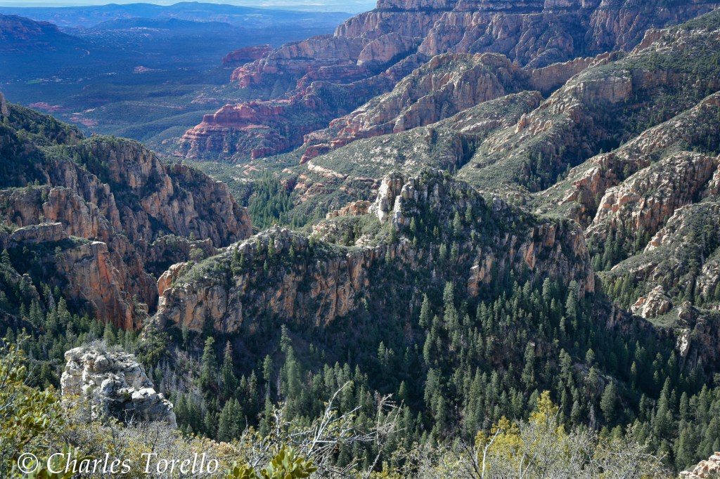 They’re stunning because you are at the top of a giant plateau – called the Colorado Plateau – and you are 2000′ to 2500′ above the Red Rocks of Sedona, and the light and colors from up high are almost as good as Grand Canyon. If this area were a National Park, it would be in my Top 10.
